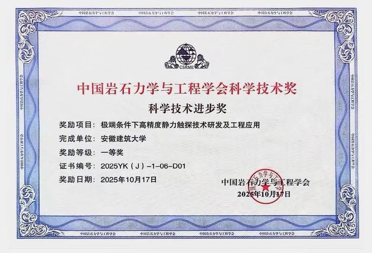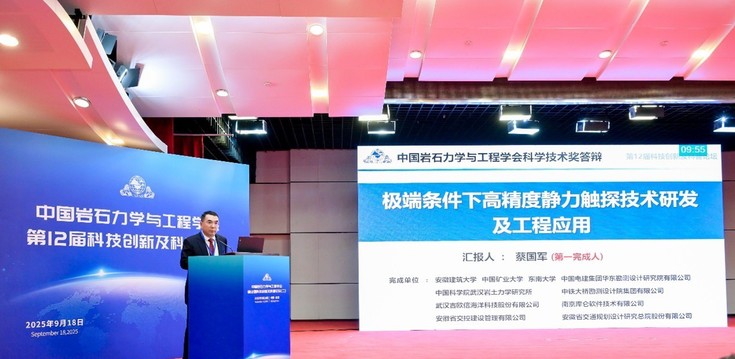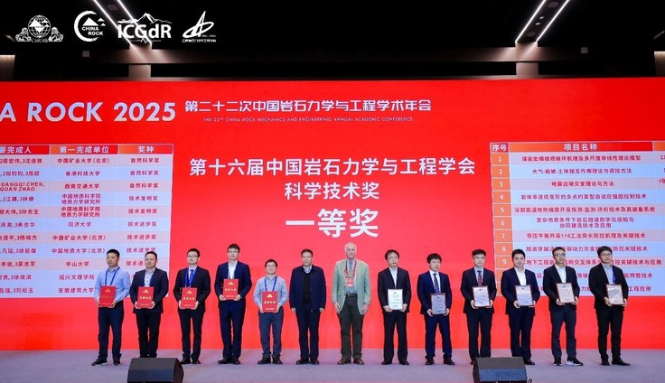 本网讯  10月17日至19日,CHINA ROCK 2025第二十二次中国岩石力学与工程学术年会在雄安新区顺利召开。在大会闭幕式上,隆重颁发了第十六届“中国岩石力学与工程学会科学技术奖”。蔡国军教授牵头申报的“极端条件下高精度静力触探技术研发及工程应用”项目,荣获科学技术进步一等奖。